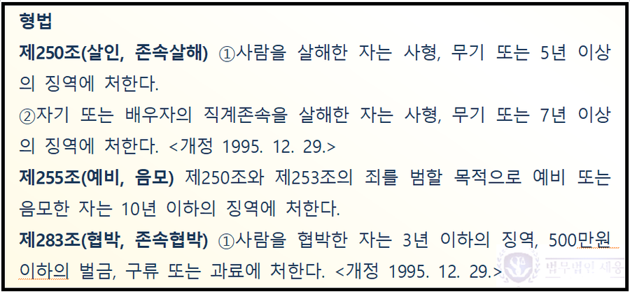 살인예비는 사람을 살해하려는 목적으로 예비행위를 한 경우에 성립하는 범죄로 법정형으로 벌금형이 없고 10년 이하의 징역형만 규정되어 있습니다.