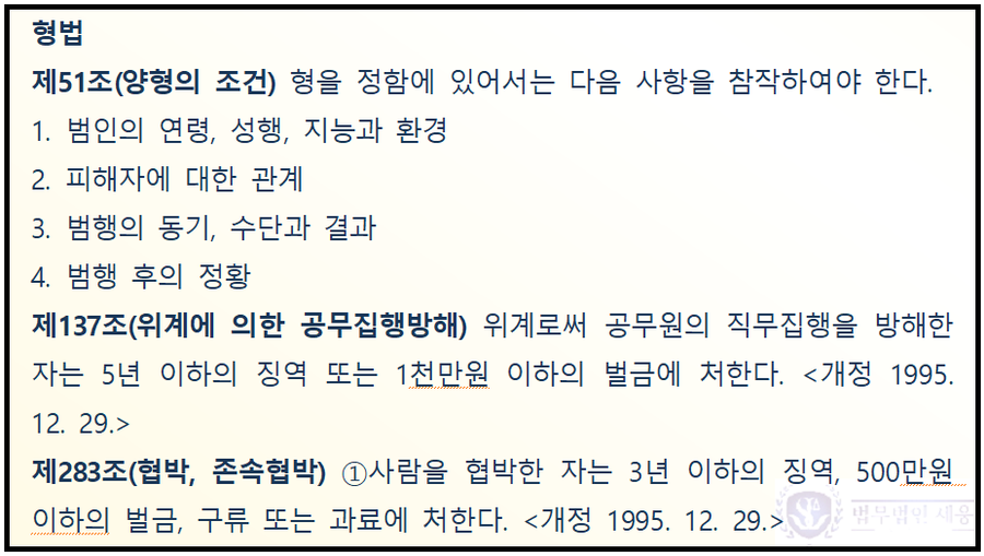 다만 형벌을 정할 때에는 행위만을 가지고 평가하는 것이 아니라 행위자의 연령, 성행, 지능과 환경, 범행의 동기, 수단과 결과, 범행 후의 정황 등 수많은 요소를 고려하여야 하므로(형법 제51조), 유리한 정상관계(情狀關係)를 잘 정리하여 주장함으로써 재판부의 선처를 이끌어 내야 합니다.