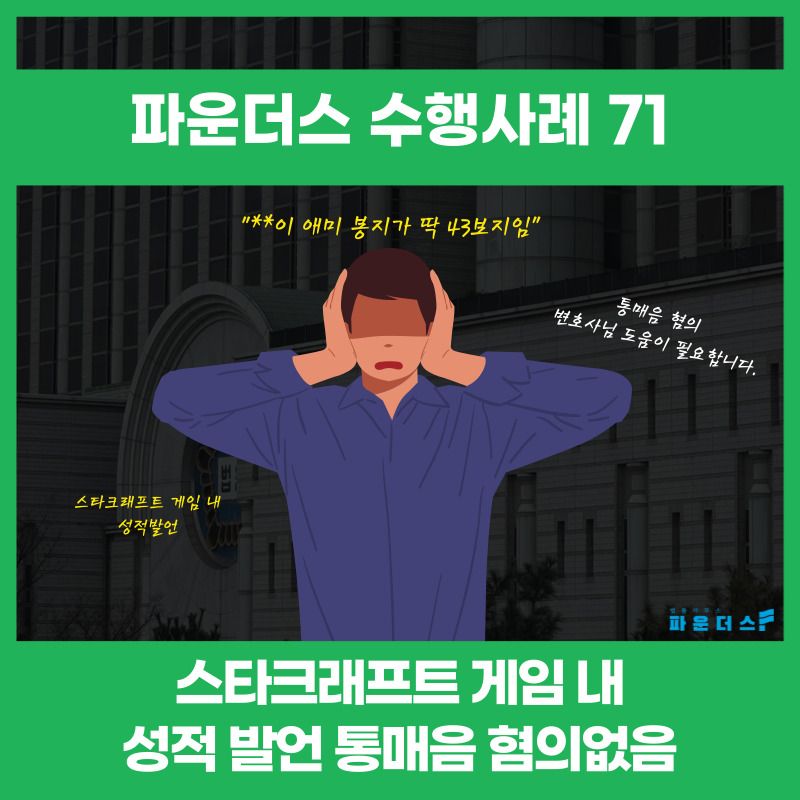 스타크래프트 게임을 하던 의뢰인은 당시 방장이었으며 게임을 늦게 시작한다는 이유로 다른 유저들에 의해 온갖 패드립과 성희롱을 듣게 되었습니다. 가면 갈수록 심해지는 정도에 더 이상 참을 수 없었던 의뢰인은 참다 못해 패드립을 하게 된 것인데요. 의뢰인은 게임 내 채팅방에 상대를 향하여 “**이 애미 봉지가 딱 43보지임 **이 애미 클리”의 내용을 전송한 것으로 통매음 혐의에 연루된 것입니다.