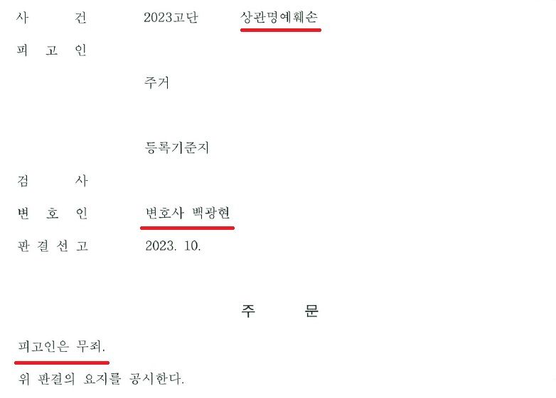법원은 변호인의 의견을 받아들여 의뢰인의 상관명예훼손 혐의에 대하여 '무죄' 선고를 하였습니다.