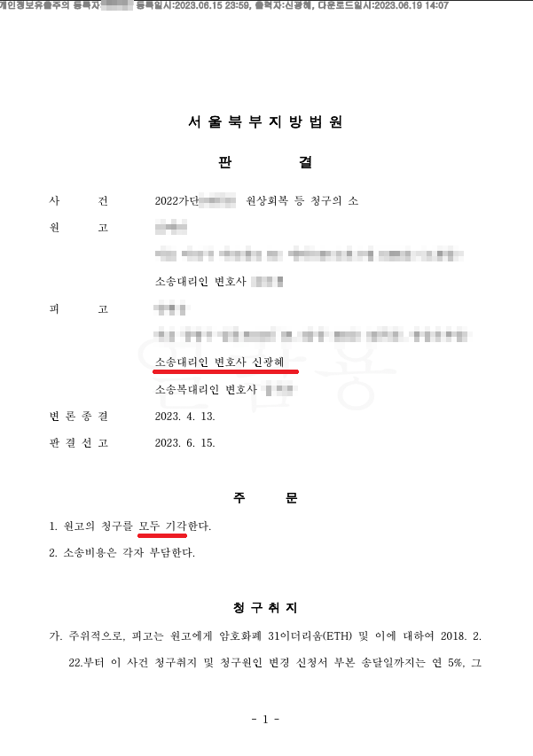 가상화폐는 그저 매개체일 뿐 실제 소송상으로는 쟁점이 각기 다릅니다.