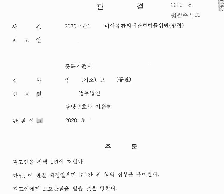 마약범죄는 어떤 변명으로도 정당화 될 수 없을 것입니다. 하지만, 그 구체적 경위는 정상참작사유로서 반영되어야 합니다. 성실한 사회구성원으로 살아오면서 헌신적인 가장의 역할을 했다는 점, 어린 자녀를 양육할 사람이 의뢰인 뿐이라는 점과 비록 이 사건이 수사기관에 의해 적발된 것이지만 함정수사에 따른 것이었다는 점 등을 적극 변론하여, 실형을 반드시 면하게 해주고 기회가 주어져야 하는 사람이라는 점을 강력하게 변론하였습니다.