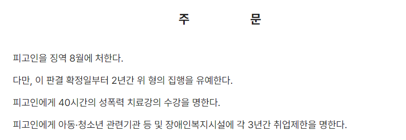 하지만 결국 피고인에 대해서는 징역 8월에 2년간 집행을 유예하는 판결이 내려졌습니다.