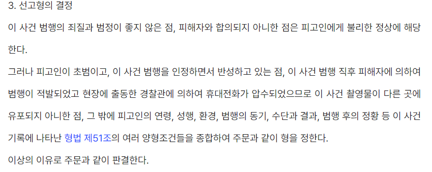최종적으로 법원에서는 위와 같은 선고형의 결정을 하면서, 피고인에게 유리한 판결을 하는 이유를 설시하기도 했습니다.
