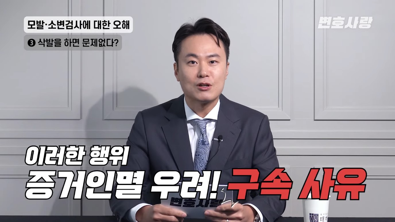소변은 마약 성분의 잔류 기간이 짧기 때문에, 오래 전 투약한 마약에 대해서는 모발검사를 진행합니다. 가장 널리 알려진 회피 방법으로 삭발이 있는데요. 모발로 검사하는 이유는 단순히 채집이 용이하기 때문입니다. 눈썹 등 다른 체모로도 마약 성분은 검출됩니다. 또 체모 채집이 어렵다면 손, 발톱으로도 대체가 가능합니다. 따라서 검사를 피하기 위해서는 눈썹을 포함한 전신을 제모하고 손톱과 발톱을 뽑아야 하는 것이죠. 하지만 이러한 행위는 증거인멸 우려로 구속사유가 됩니다. 단순 투약 사건임에도 구속 상태로 수사와 재판을 받아야 하는 불리한 상황을 불러올 뿐 아니라 괘씸죄로 가중처벌을 받게 될 수 있습니다.