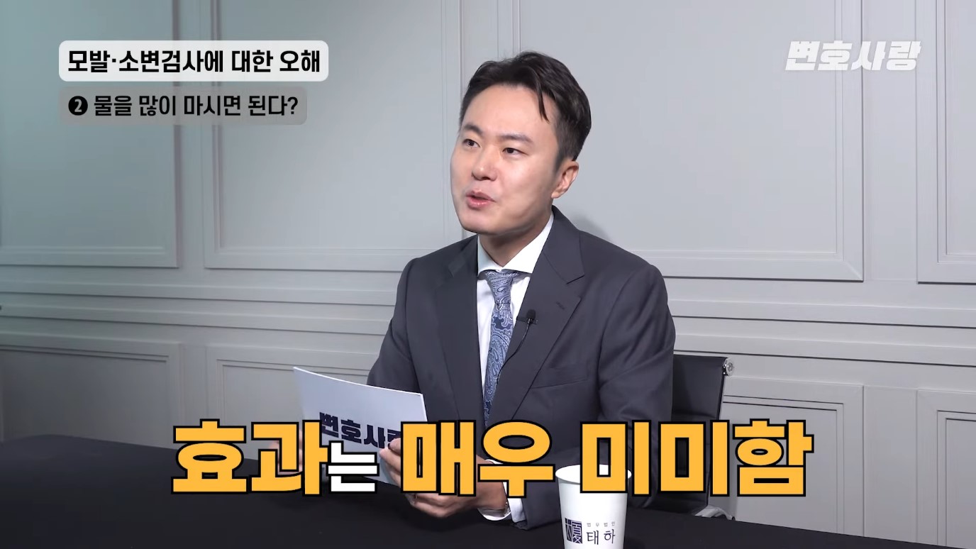 인터넷에서 흔히 알려진 검사 회피 방법인데요, 마약류 검사는 체내에 남은 성분을 검출해내는 방식이죠. 그렇기 때문에 링거를 맞거나, 맥주나 물을 마셔 다량의 소변을 배출하거나, 운동을 통해 땀을 빼내면 체내의 마약류 성분이 빠져나간다는 내용입니다. 터무니없는 이야기는 아니지만, 효과는 매우 미미합니다. 실제로 제 마약 사건 경험에 비추어 봤을 때, 대부분의 의뢰인분들이 이미 이런 작업들을 시도한 뒤였지만, 결과적으로는 양성반응이 검출되었습니다.