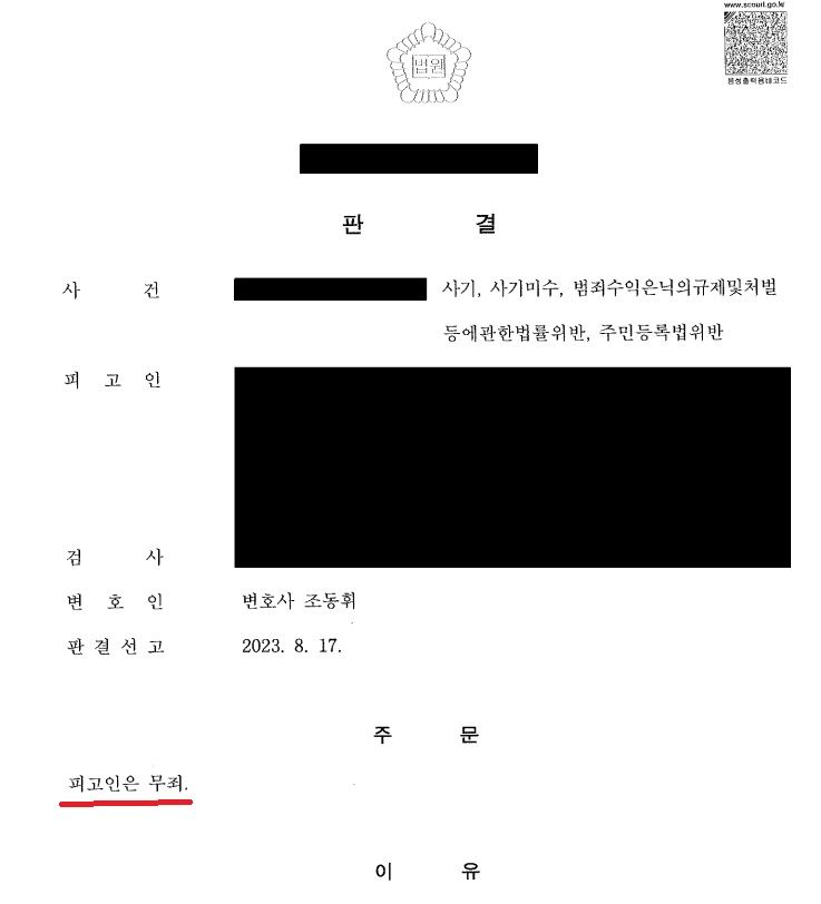 보이스피싱 아르바이트 사건이 기소되어서 무죄를 선고 받은 사례입니다.