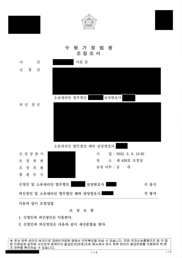 법무법인 태하는 부부공동재산에 대한 상대방의 기여도가 낮다는 점을 논리적으로 주장하였고, 이를 통해 상대방이 재산분할금 8,500만 원에 동의할 수 있도록 조정을 이끌었습니다.