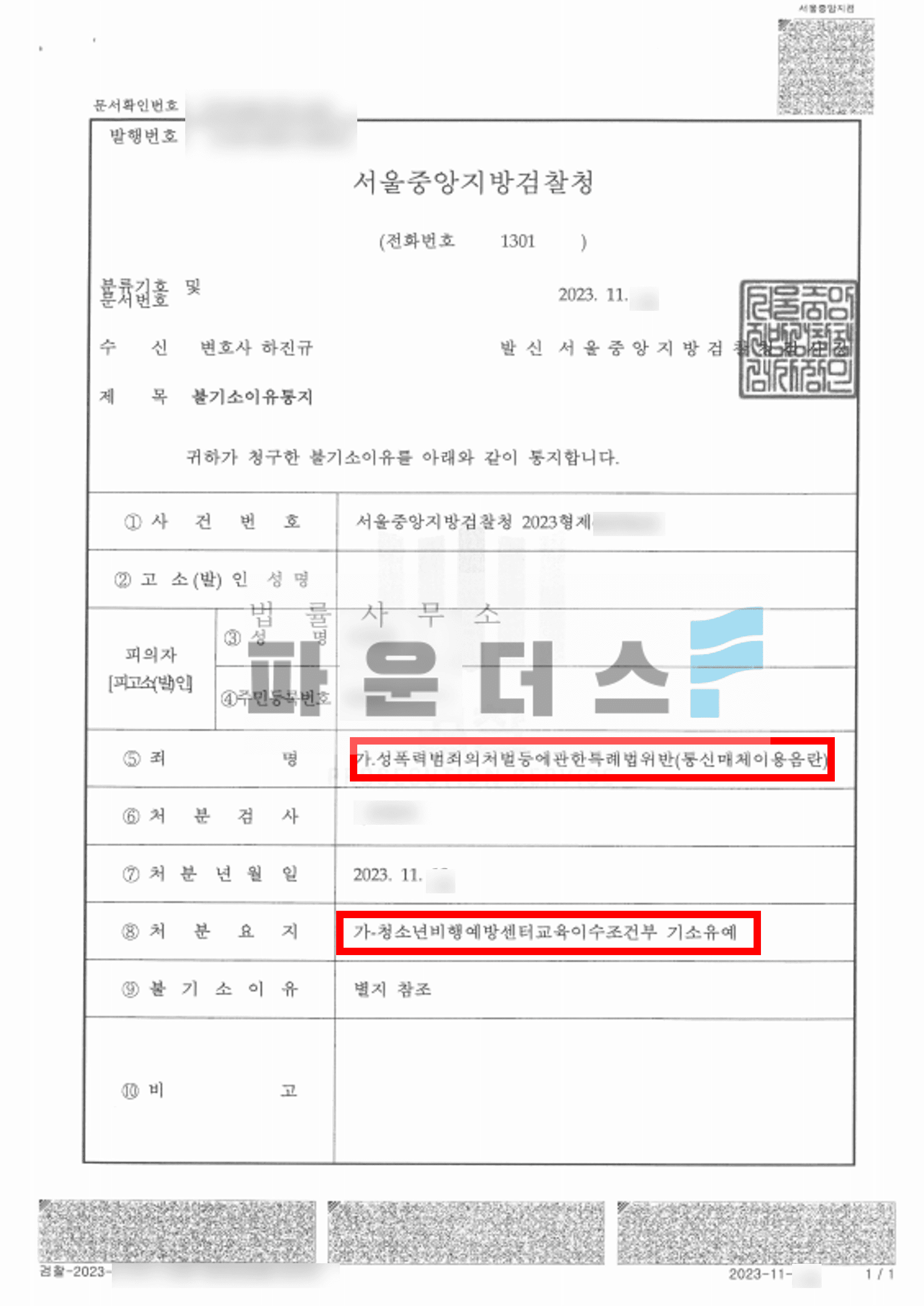 그 결과 의뢰인은 통매음 혐의에 있어 기소유예 처분으로 사건을 마무리할 수 있었습니다.