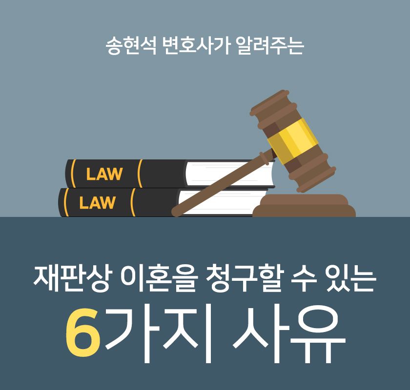 우리 법에서는 재판상 이혼을 청구할 수 있는 사유에 대해 6가지를 규정하고 있습니다.