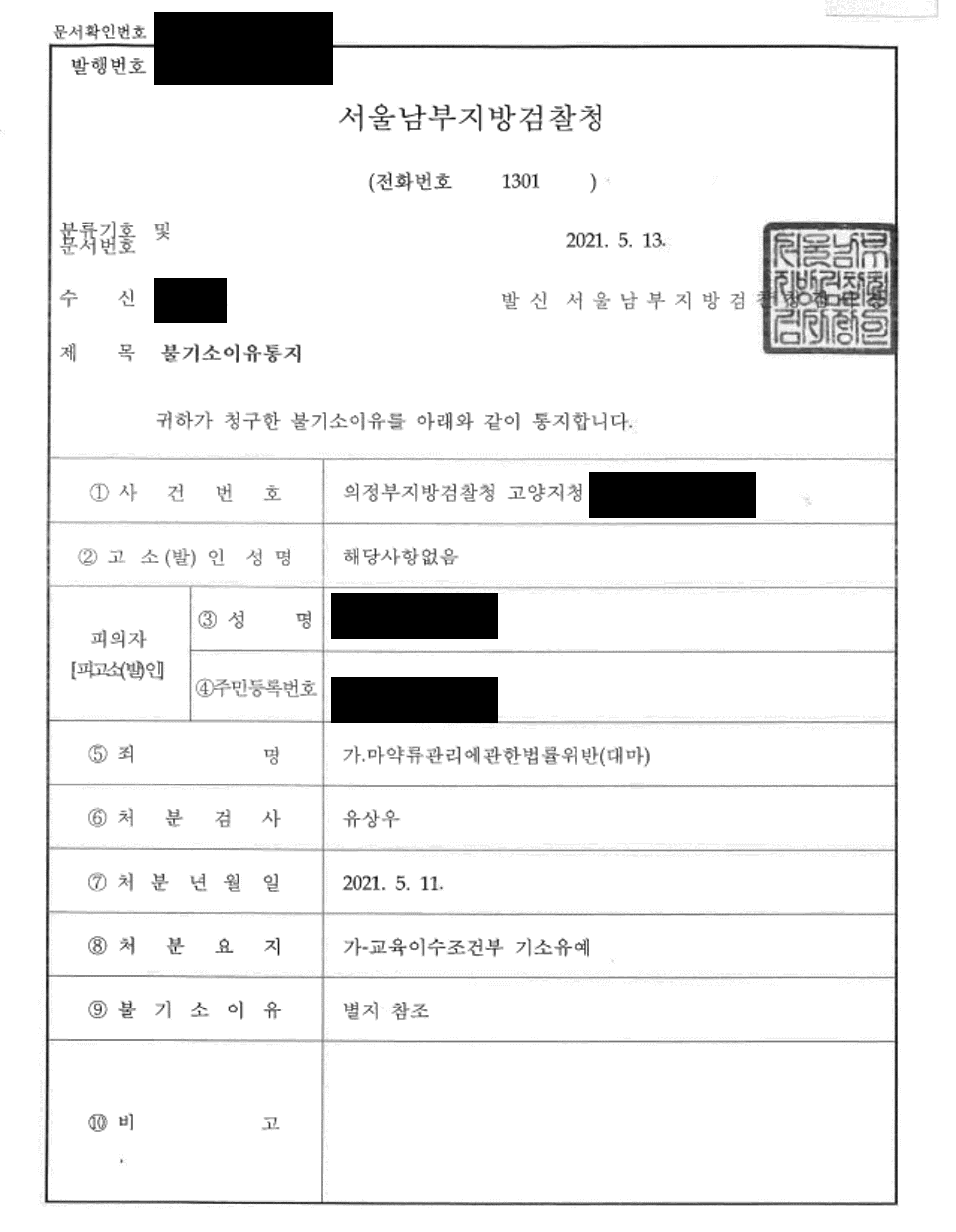 담당 변호인은 조사 과정에서뿐만 아니라 그 이후에도 수사기관에 초범인 점, 잘못을 인정하고 반성하는 점, 액상대마를 매수하여 흡연한 횟수가 많지 않은 점 등 의뢰인의 유리한 정상을 적극적으로 피력하였습니다.