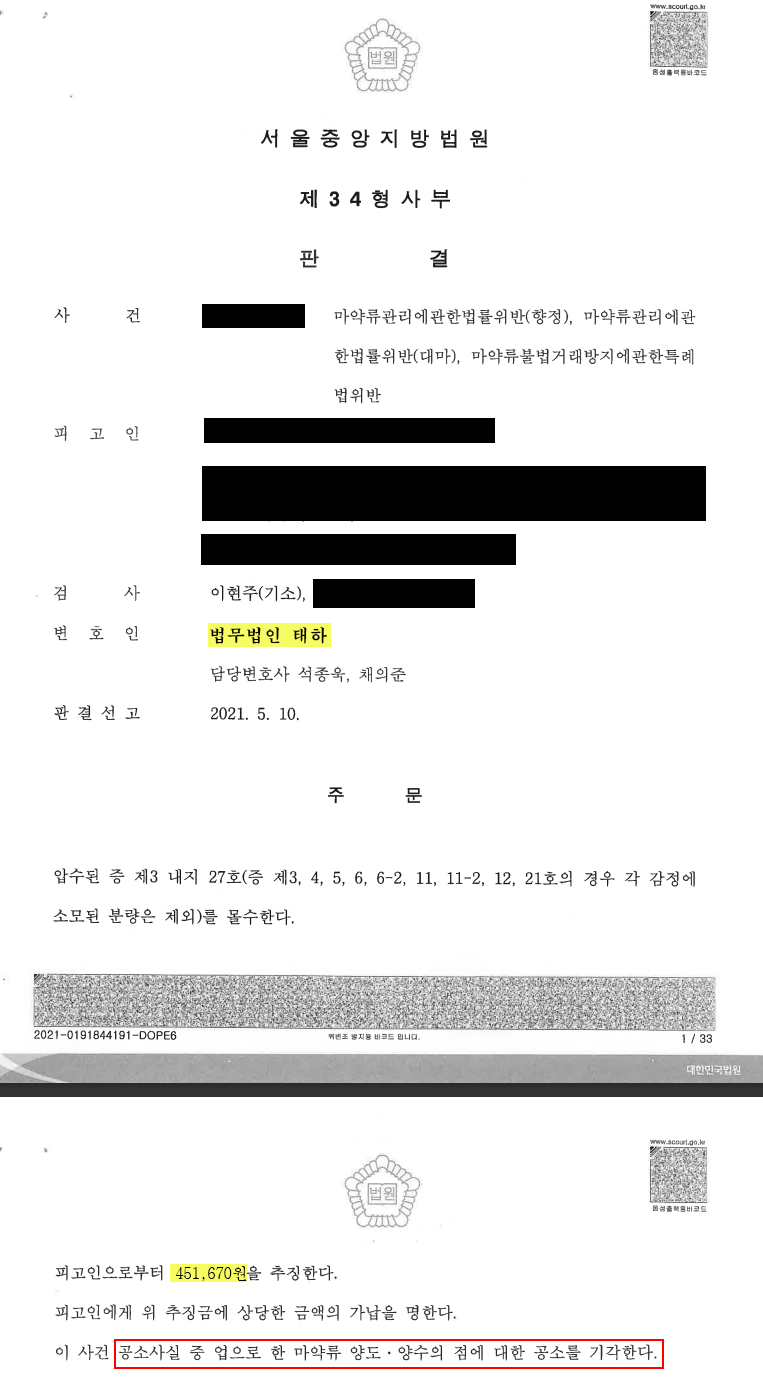 의뢰인은 단순히 마약류를 소지하고 있던 것이 아니라 적극적으로 마약류를 광고하고 수백 회에 걸쳐 판매에 나아갔던바, 가담 정도가 크고 실제로 판매된 마약류의 양도 많아 공소사실이 그대로 인정될 경우에 중형뿐만 아니라 2억 6,000만 원 상당의 다액의 추징이 예상되는 상황이었습니다.