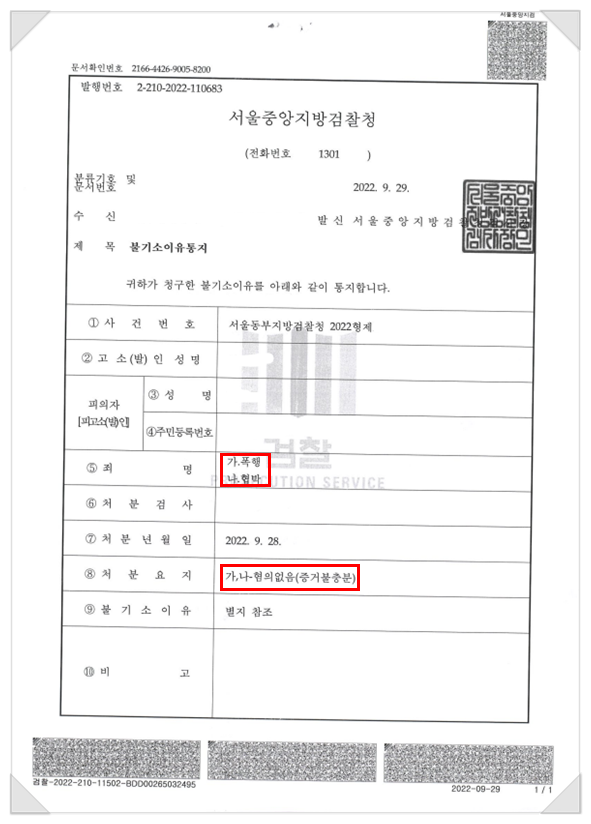 이와 같은 노력으로 의뢰인은 각 혐의에 대하여 모두 불기소(혐의없음) 처분을 받을 수 있었습니다.