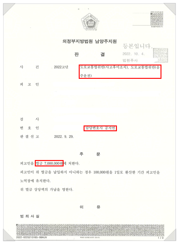 이와 같은 노력으로 의뢰인은 벌금 700만 원을 선고받아 중형을 면할 수 있었습니다.