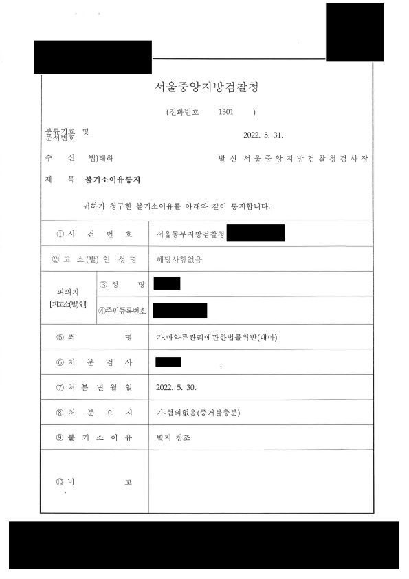 검사는 변호인의 주장을 받아들여 의뢰인에 대하여 혐의없음(증거불충분) 처분을 하였습니다.