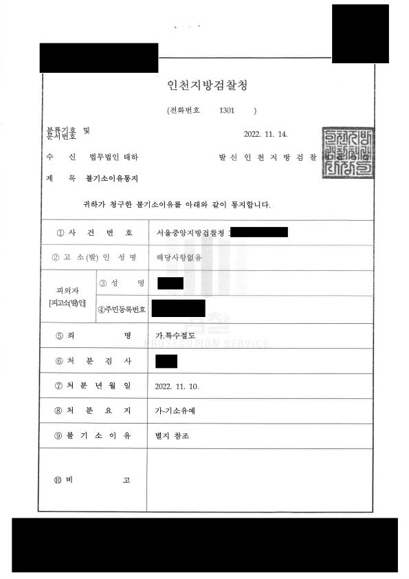 검사는 변호인의 주장을 받아들여 의뢰인에 대하여 기소유예 처분을 하였습니다