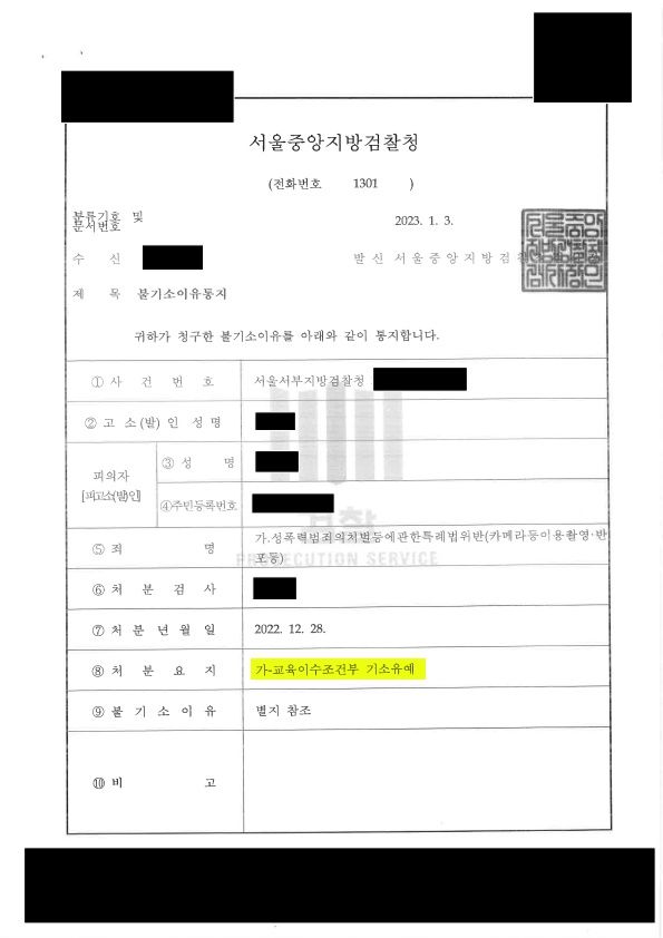 수사기관은 변호인의 주장을 받아들여 교육조건부 기소유예처분을 하였습니다.