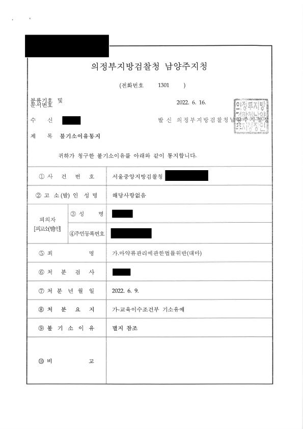그 결과 송치된 대마초의 구매하고 흡연한 양이 많지 않았고, 양형과 관련하여 정상자료를 제출함으로써 교육이수조건부 기소유예의 결과를 얻을 수 있었습니다