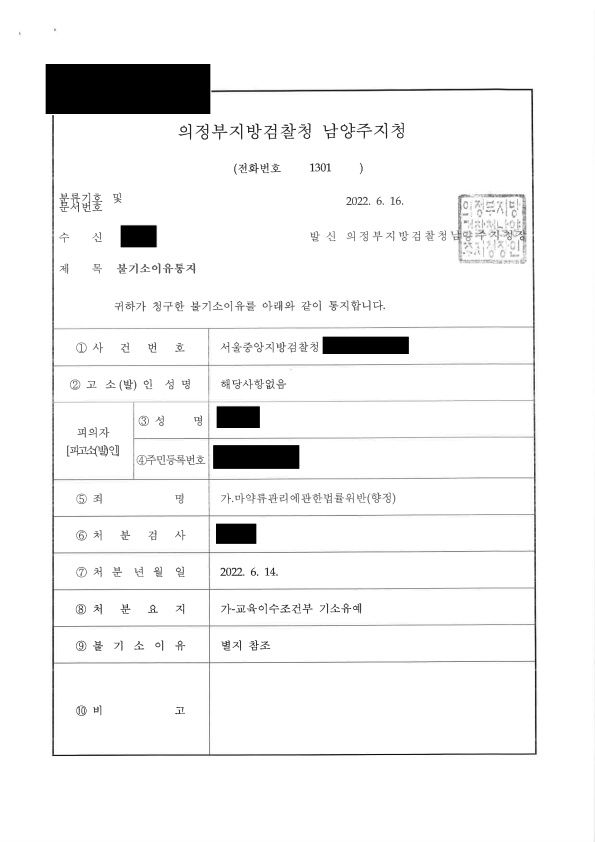 검사는 변호인의 주장을 받아들여 의뢰인에 대하여 교육이수조건부 기소유예 처분을 하였습니다.