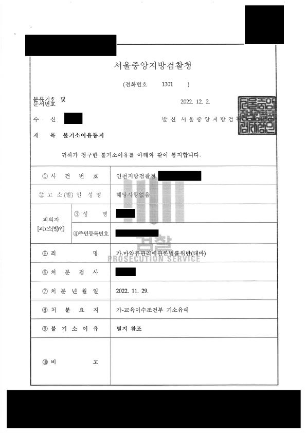 수사기관은 변호인의 주장을 받아들여 의뢰인에 대하여 교육이수조건부 기소유예 처분을 하였습니다.