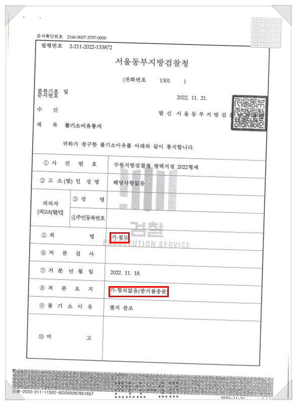 이와 같은 노력으로 의뢰인은 혐의없음(증거불충분)으로 불기소처분을 받을 수 있었습니다.