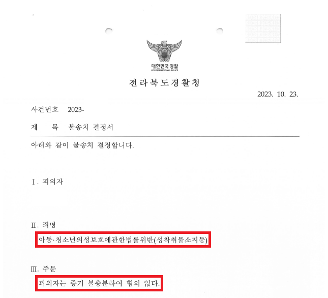 그런데 이로부터 얼마 뒤, A씨는 전라북도경찰청으로부터 아동·청소년의성보호에관한법률위반(성착취물소지등) 혐의로 압수·수색 영장을 집행당하게 되었습니다.