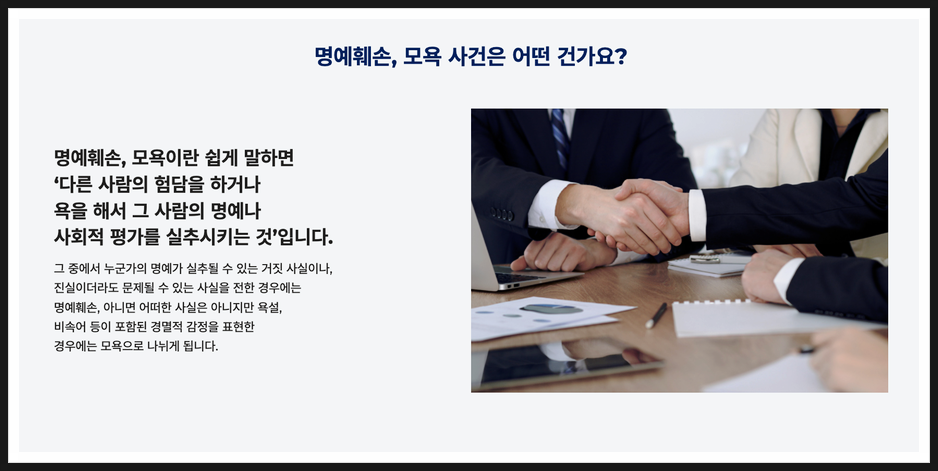 ![[명예훼손/모욕] 형사 전문 변호사의 대응법 #직장내명예훼손](/_next/image?url=https%3A%2F%2Fd2ai3ajp99ywjy.cloudfront.net%2Fuploads%2Ftitleimage%2Foriginal%2F5c495c24d2552e6794388ce2-original.jpg&w=3840&q=75)