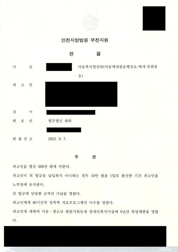 의뢰인은 아동복지법위반(아동에대한음행강요‧매매‧성희롱 등)으로 수사를 받았습니다.