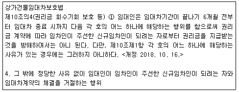 임대인은 위와 같은 사유가 상가임대차법 제10조의4 제1항 제4호의 정당한 사유에 해당한다고 주장하였습니다.