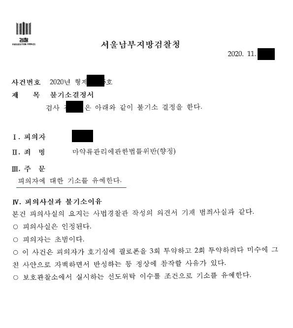 필로폰을 다수 투약한 사건임에도, 의뢰인에게 교육조건부 기소유예 처분을 내렸습니다.