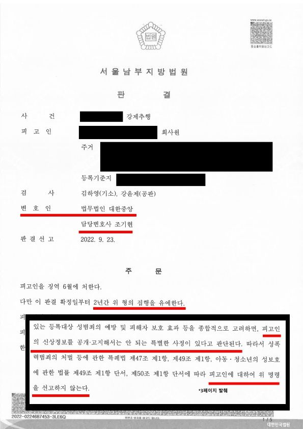 조기현변호사의 조력으로 동종전과가 있는 의뢰인은 징역 6월 집행유예 2년, 신생공개면제를 받았습니다.