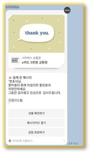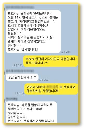 1) 2) 3)에서 모두 좋은 결과를 얻으신 의뢰인님의 감사 문자를 간단히 소개해 드리려고 합니다.
