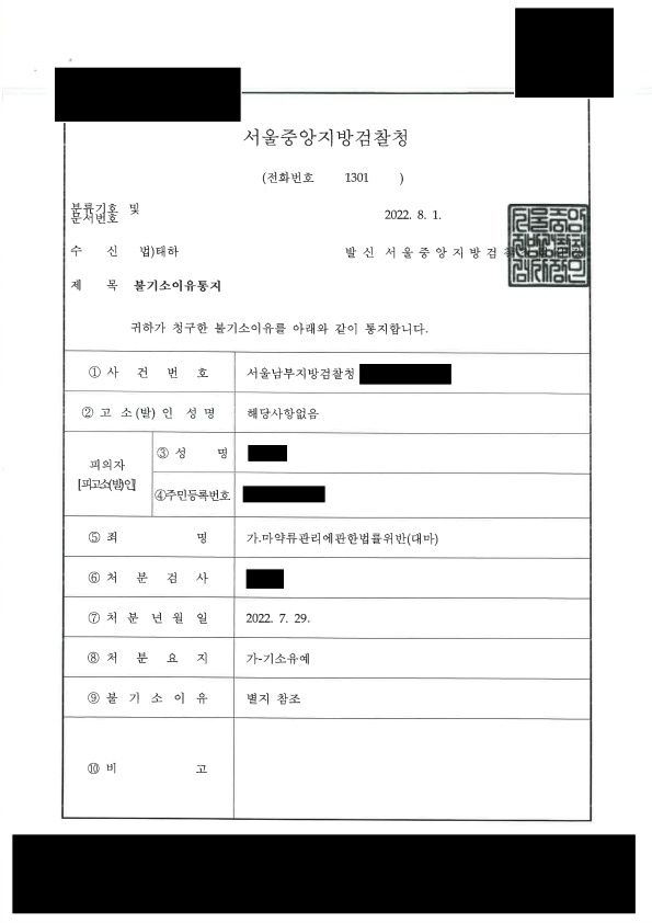 의뢰인은 마약류관리에관한법률위반(대마) 혐의로 수사를 받았습니다.