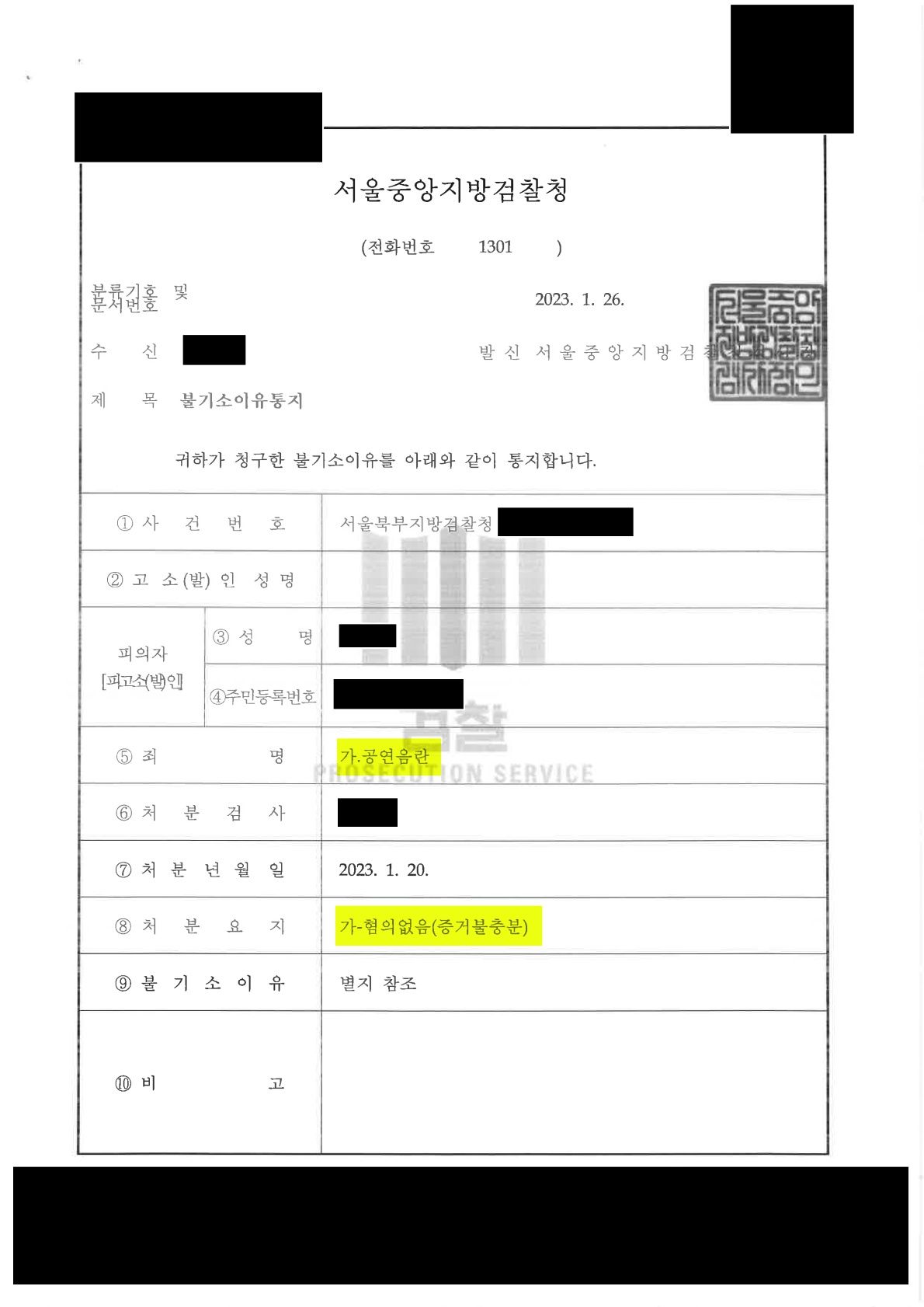 수사기관에서는 변호인이 주장하는 기타 참작 사유를 받아들여 혐의없음(증거불충분) 처분을 하였습니다.