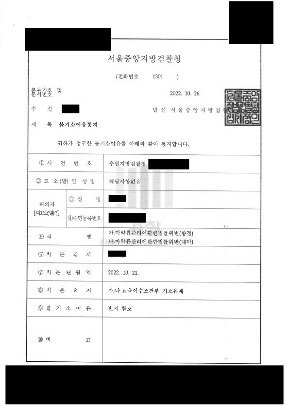 의뢰인은 마약류관리에관한법률위반(대마, 향정) 혐의로 수사를 받았습니다.