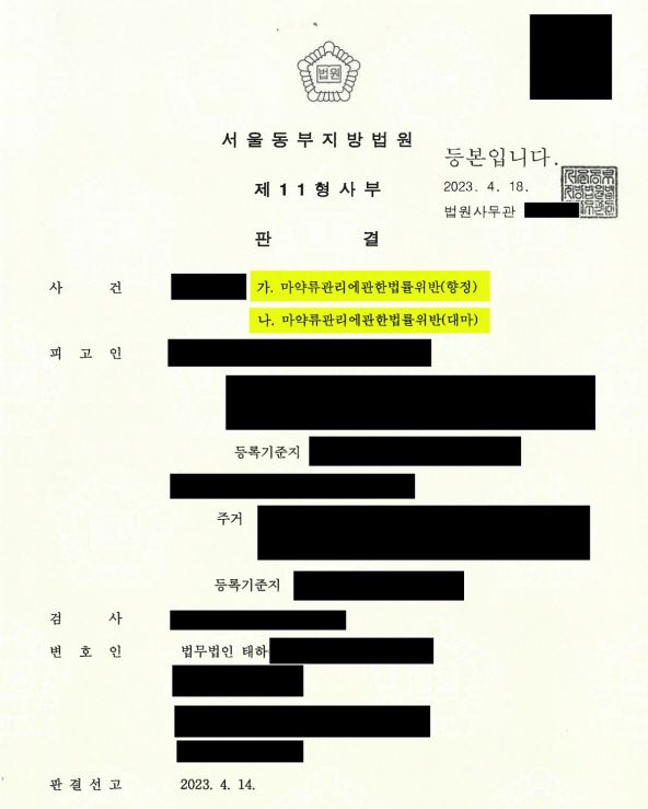 필로폰, 대마, 액상대마 매수 및 투약 집행유예 사례