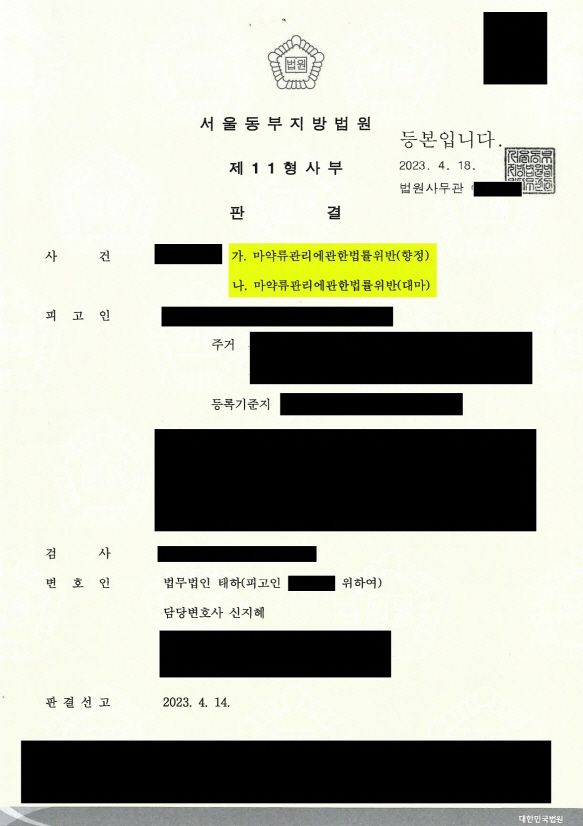 의뢰인은 마약류취급자가 아님에도 불구하고, 수차례(대마 매수 1회, 필로폰 매수 2회, 필로폰 투약 4회, 대마 흡연 3회)의 필로폰 매매, 투약, 액상대마 매매, 흡연 행위를 하였습니다.