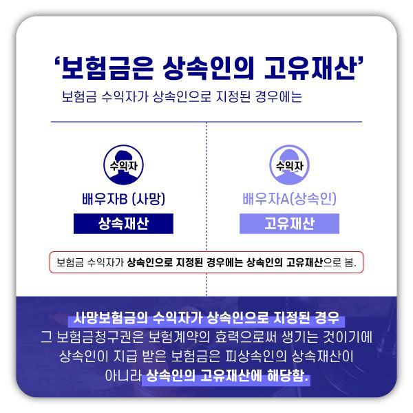 - 상속인이 보험금 수익자인 경우에는 상속재산이 아니라 상속인의 고유재산