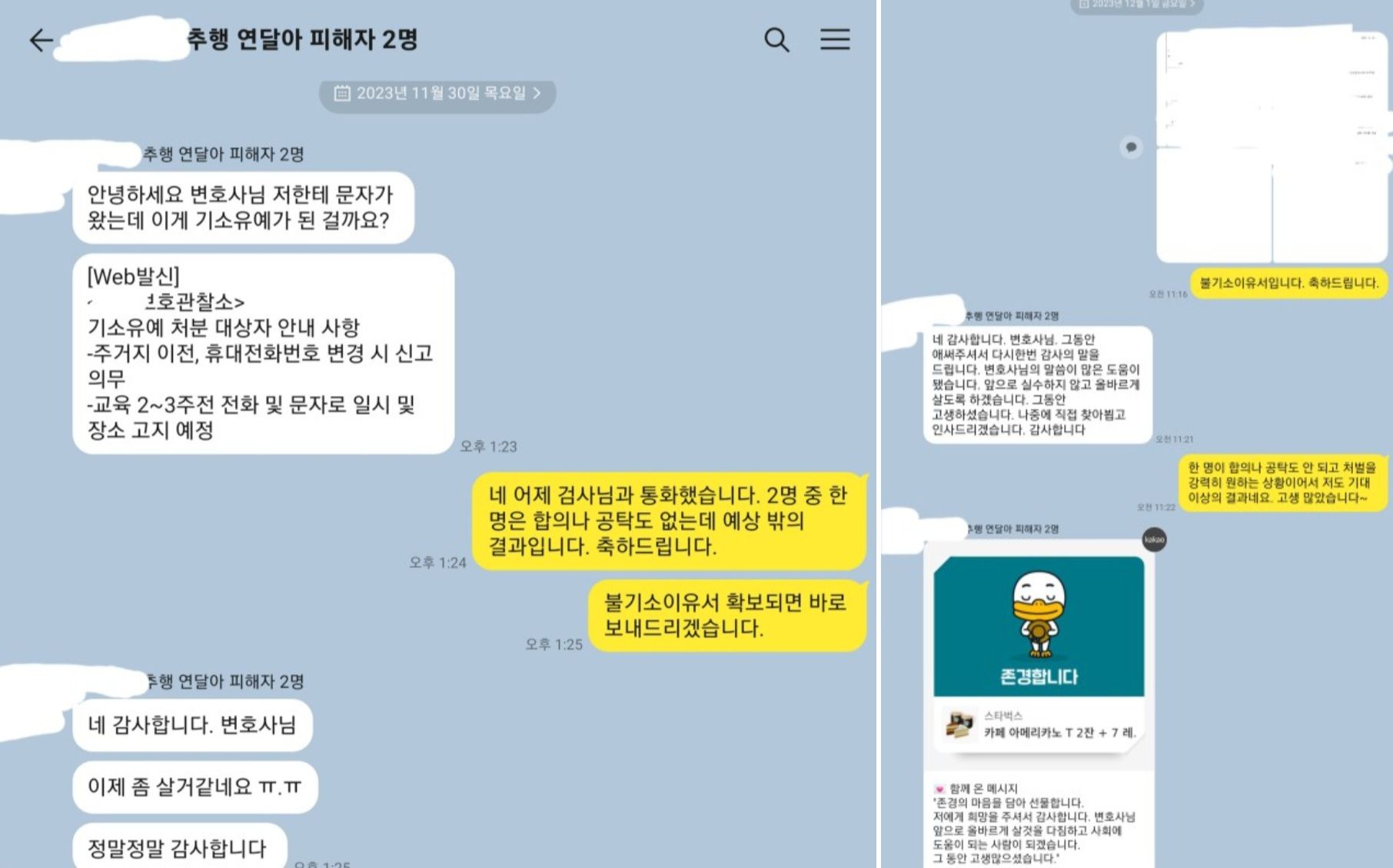 한 명의 피해자가 강력히 처벌을 원하는 엄벌탄원서까지 제출하는 상황에서 예상 밖의 결과인 기소유예라는 선처를 받았는데 포기하지 않고 최선을 다한 결과인 것 같습니다.