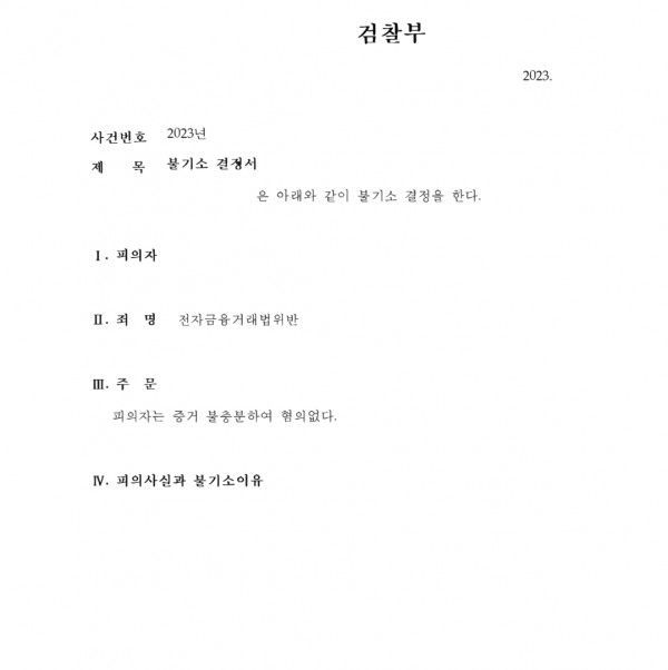 결국 검찰 단계에서 증거 불충분하여 혐의 없다는 불기소 처분을 받을 수 있었습니다. 아무래도 혐의와 관련된 간접증거들의 부재와 피의자 주장의 신빙성이 높다고 수사기관에서 판단한 것 같습니다.