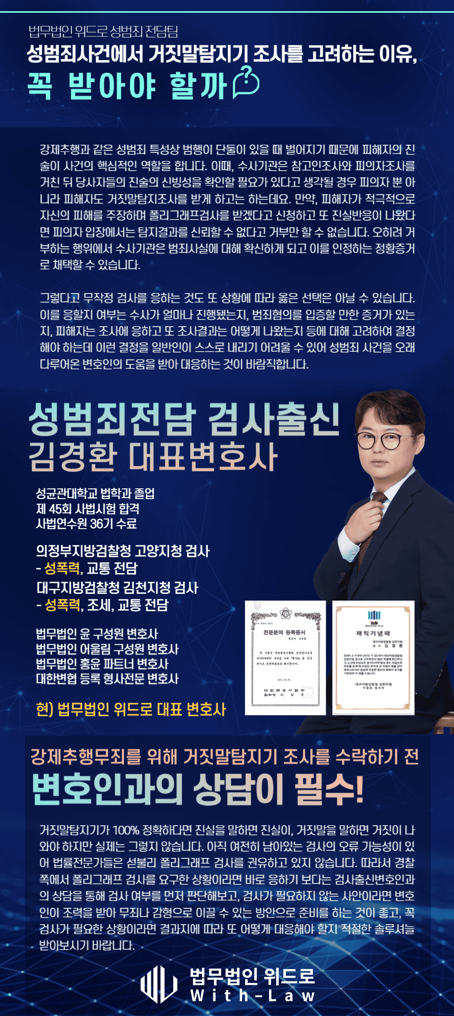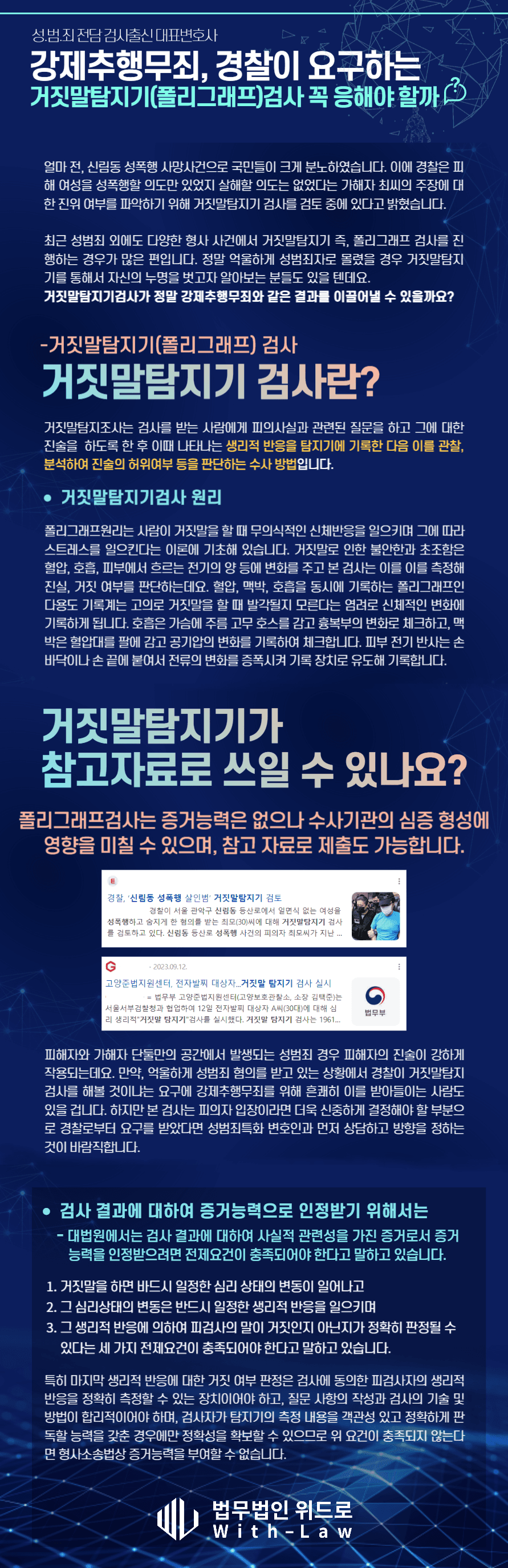 경찰이 폴리그래프 검사를 요구한 상황이라면 바로 응하기보다 사안에 대해서 객관적이고 다양한 성범죄를