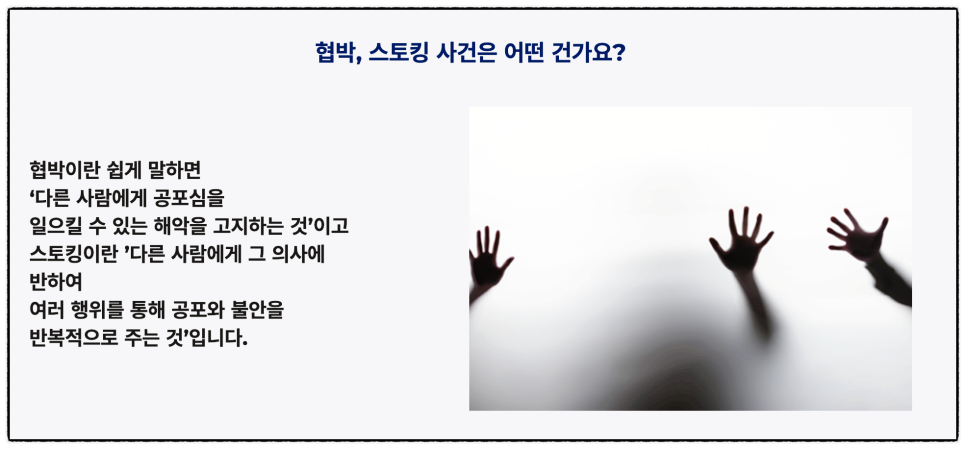 그렇기에 상대가 '협박을 당했다' 혹은, '상대가 불안감을 조성했다'라고 주장하는 부분을