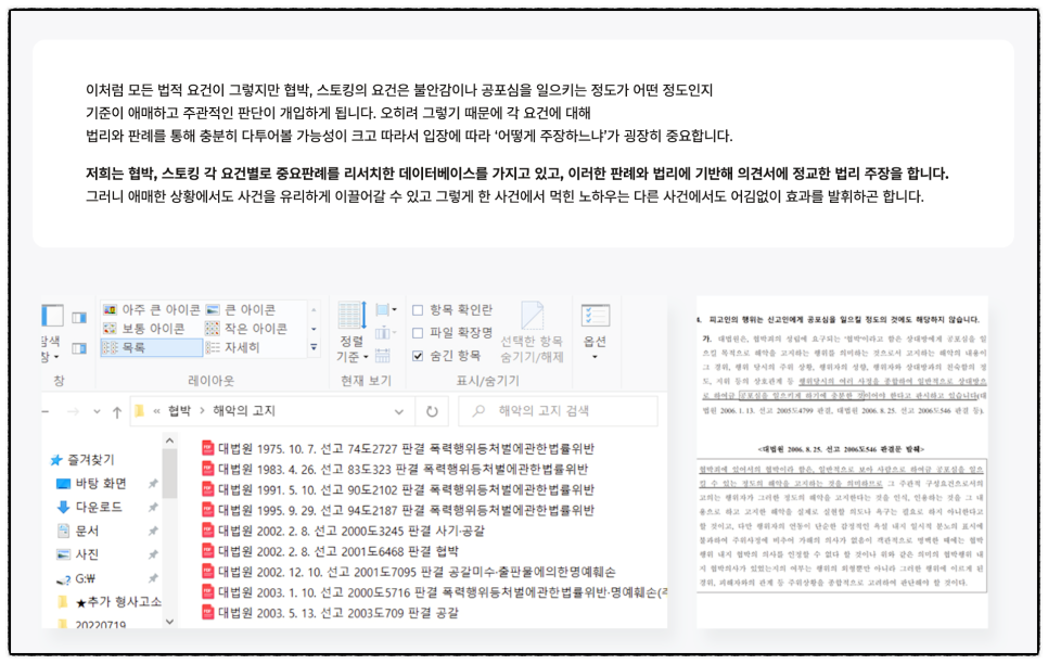 그러므로 이런 분들은 저희가 아니어도 좋으니, 실력 있는 변호사를 찾아가 상담을 받아보시길 바랍니다.
