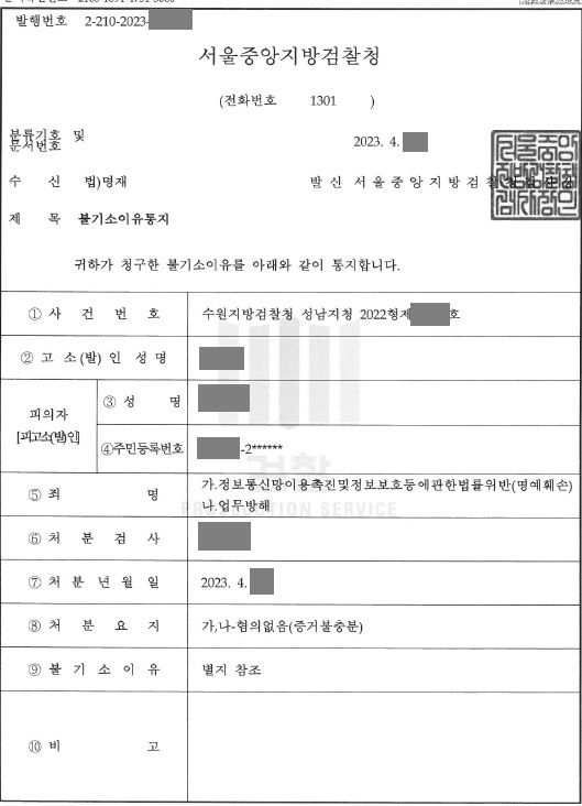 경찰은 명예훼손과 업무방해 혐의를 모두 인정하지 않고 의뢰인에 대해 불송치 결정을 하였습니다. 구인과 구직 정보가 오고 가는 인터넷 카페의 특성상 이러한 개인적인 경험을 주고받는 것도 공공의 이익을 위한 것이라고 평가할 수 있기 때문입니다. 혹시라도 유사한 일로 인해 난처한 상황에 처하신 분들이 있다면 상담을 신청해 주시기 바랍니다.