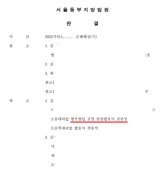 서울동부지방법원은 김준성 변호사의 위 주장을 받아들여 원고의 청구를 대폭 기각하는 판결을 선고하였습니다.