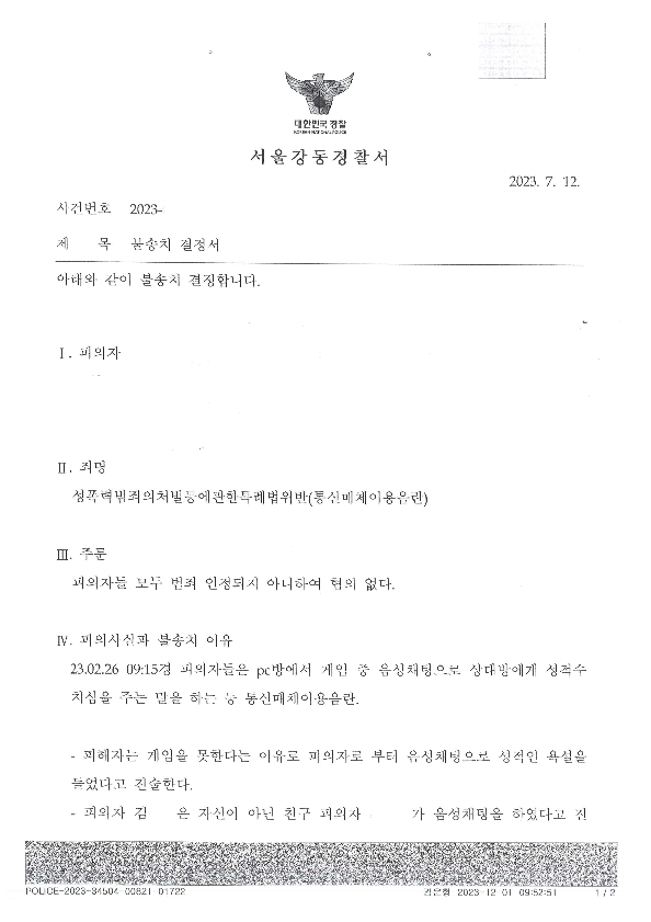 최근 게임 통매음 사건에서 무혐의나 무죄를 받는 것이 매우 쉬운 일이기에 딱히 해결사례라고 할 만한 사건도 아니지만, 게임 통매음 사건이 어느 정도 마무리 되어 가는 시점이기에, 변호사가 자기 홍보한다는 생각은 하지 않을실 것 같아서 해결사례로 올리게 되었습니다.
