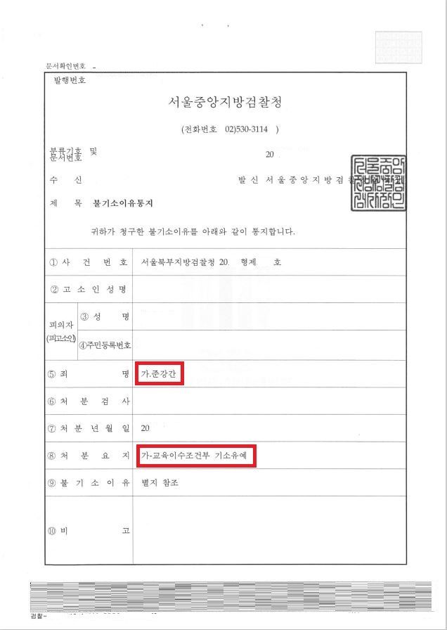 검찰에서도 의뢰인이 사후 대처와 반성의 정도, 피해자와 원만한 합의, 재범방지를 위한 노력 등 여러 변호인이 주장하는 정상참작자료와 재범의 위험성 등을 고려하여, 이번에 한하여 의뢰인에게 교육조건부 기소유예의 처분을 하였습니다.