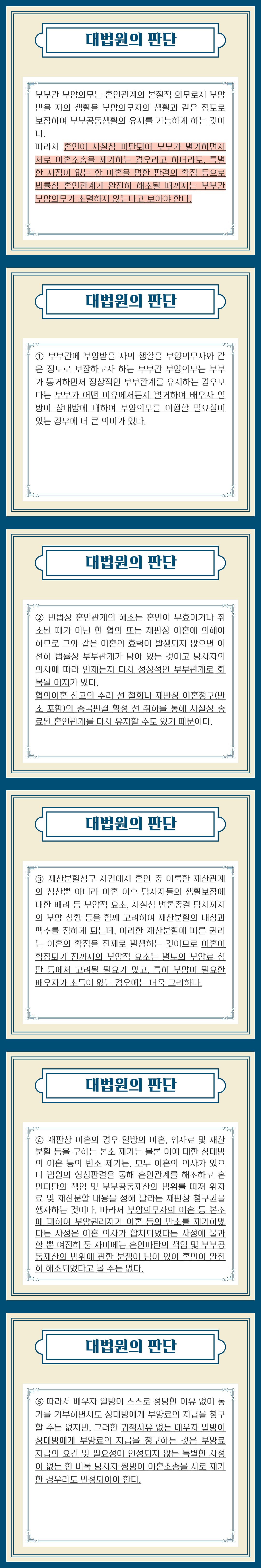 특히 경제활동을 하지 않은 당사자의 입장에서는 소송을 진행하게 되면 상대방으로부터 당장 생활비(부양료)를 지급받지 못하게 될 것이 명백하고, 그렇게 될 경우에는 생계가 어렵게 될 것 같은 생각에 쉽게 이혼소송을 진행하지 못합니다.