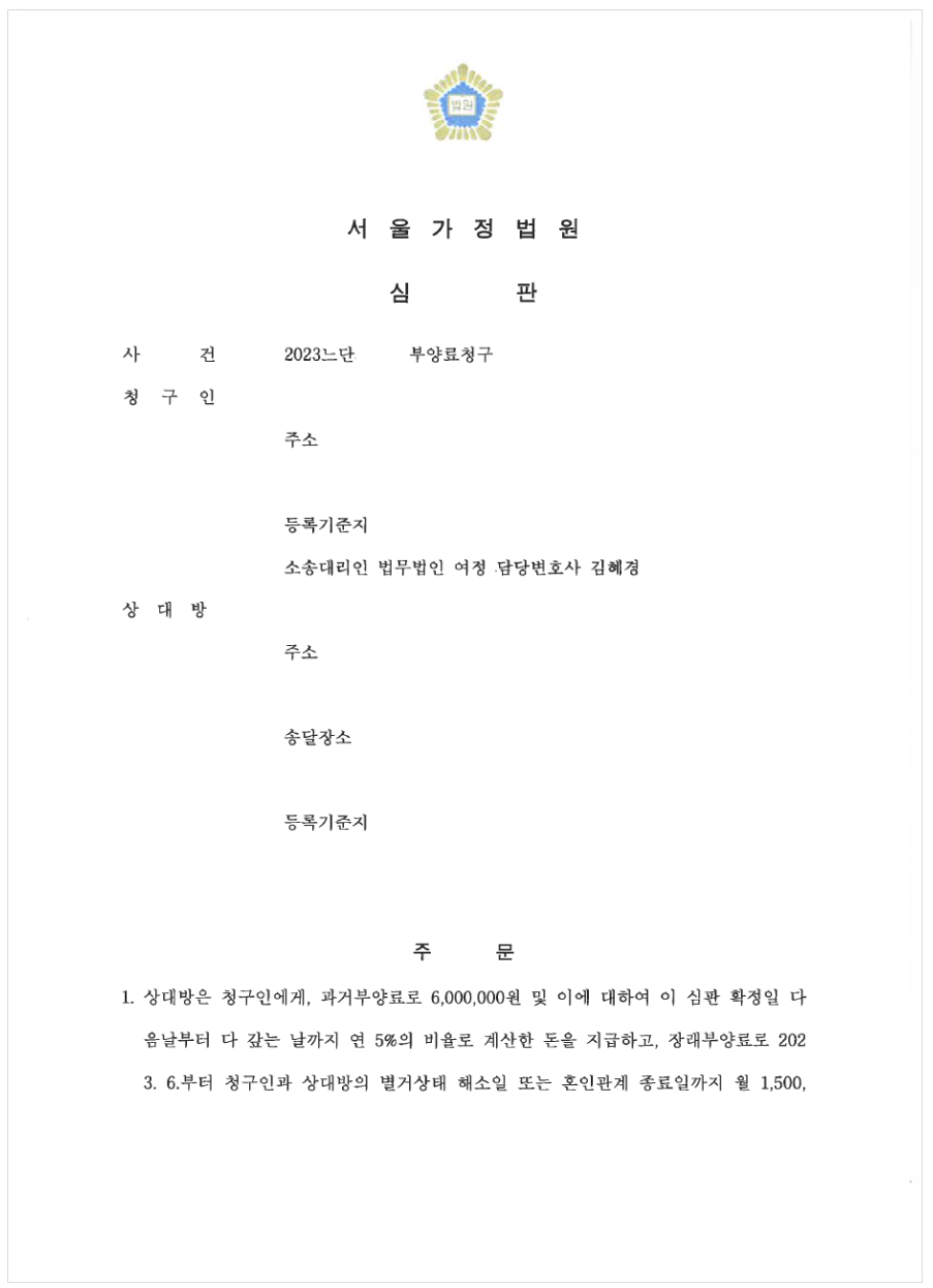 오늘은 이혼 소송 중인 상황에서 상대방을 상대로 과거부양료 및 장래부양료를 청구하여 인정받은 사례를 소개해드리도록 하겠습니다.