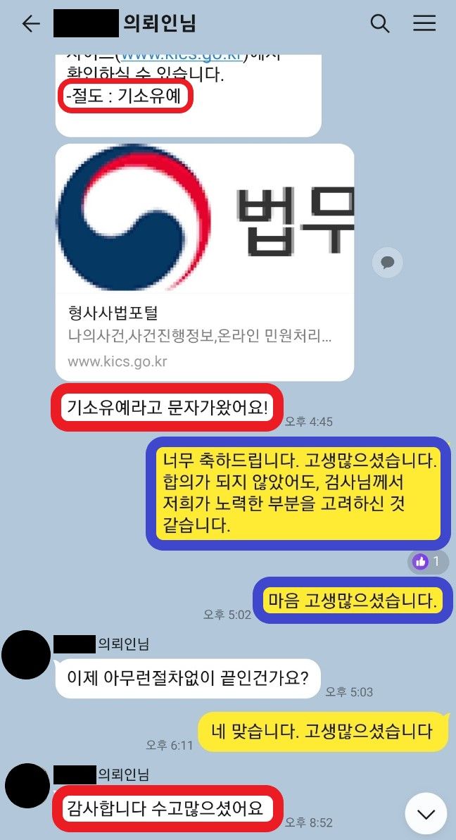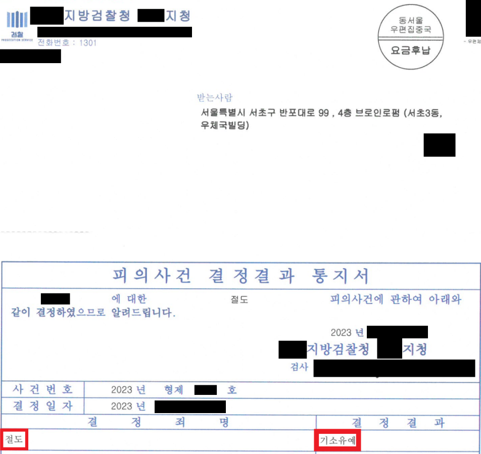 3. 법적 조력 결과 - 합의없이 기소유예 처분!